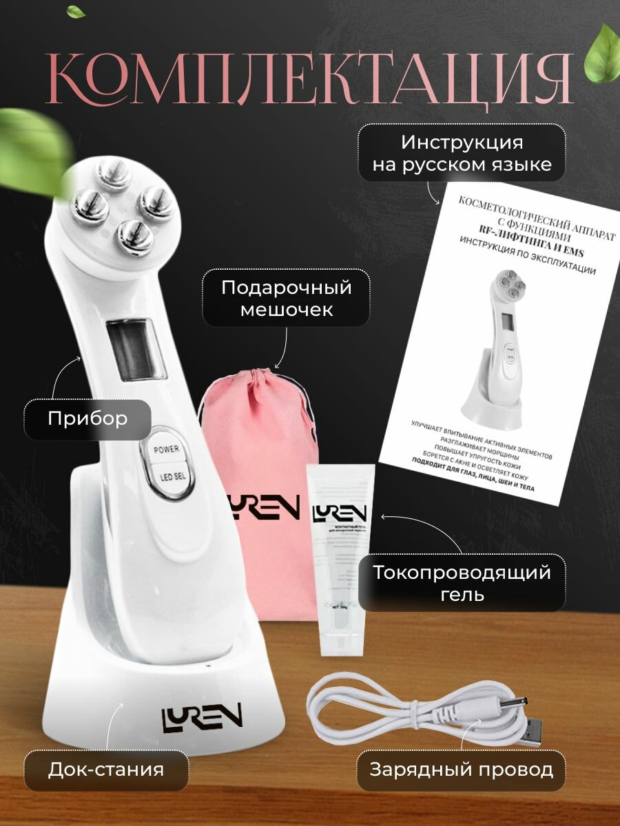 Микротоковый массажер для подтяжки лица и шеи Rf лифтинг аппарат от морщин 5 в 1 Led терапия омоложение, очищение