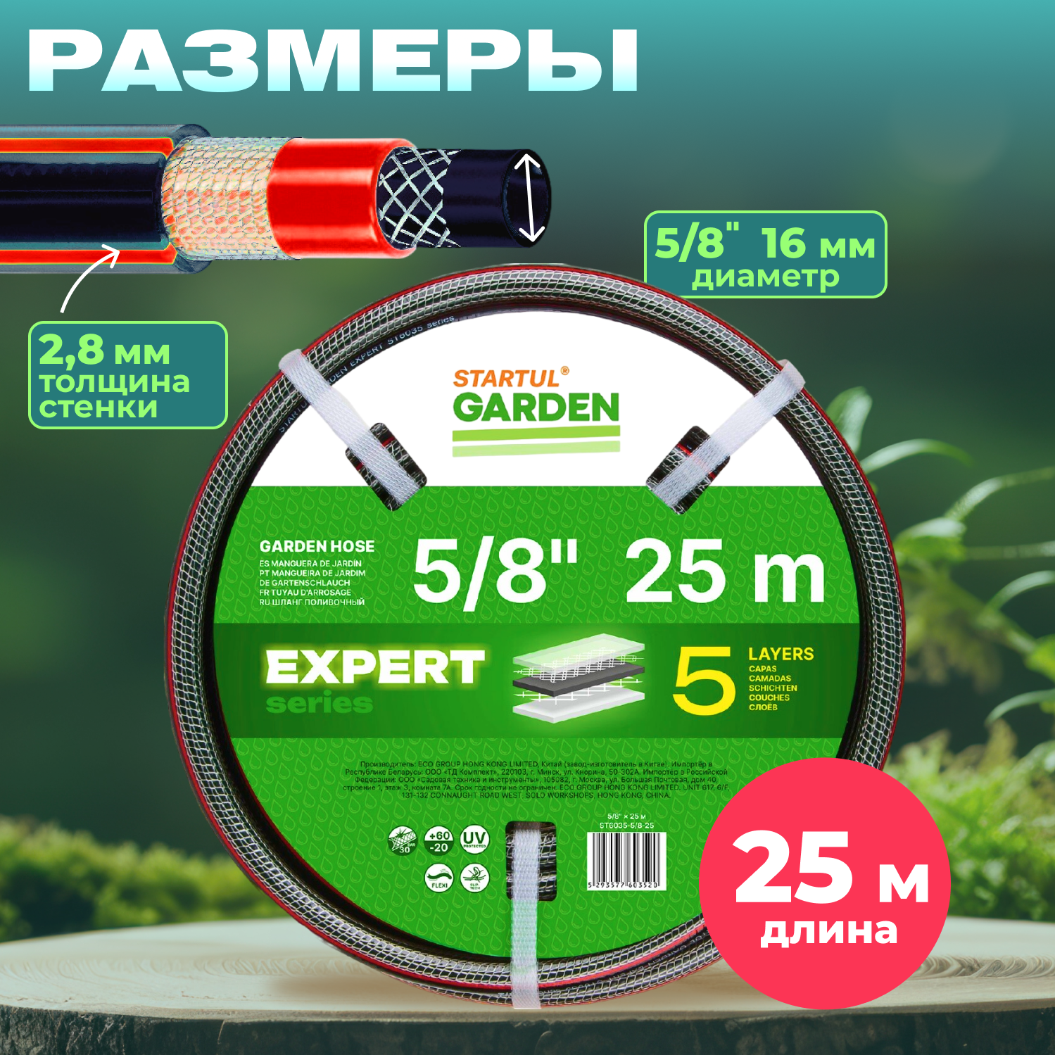 Шланг поливочный садовый 3/4" 25м STARTUL GARDEN EXPERT 5 слоев (ST6035-3/4-25)