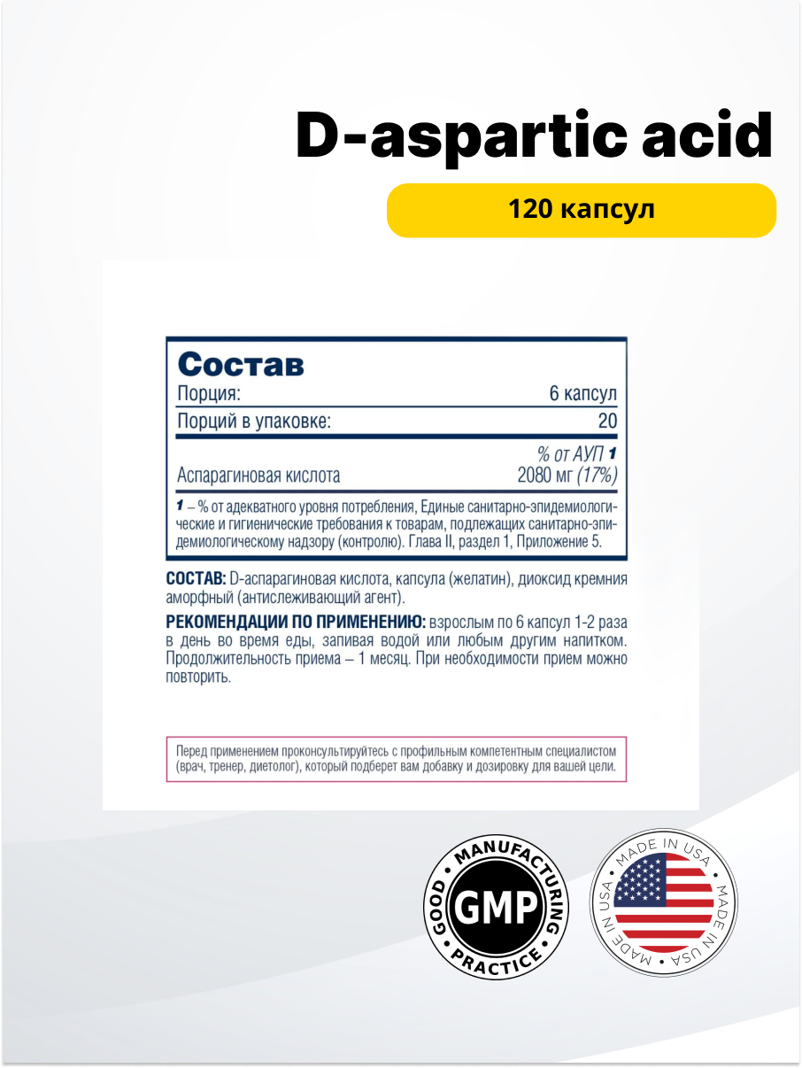 D-Aspartic Acid Capsules, 120 капсул