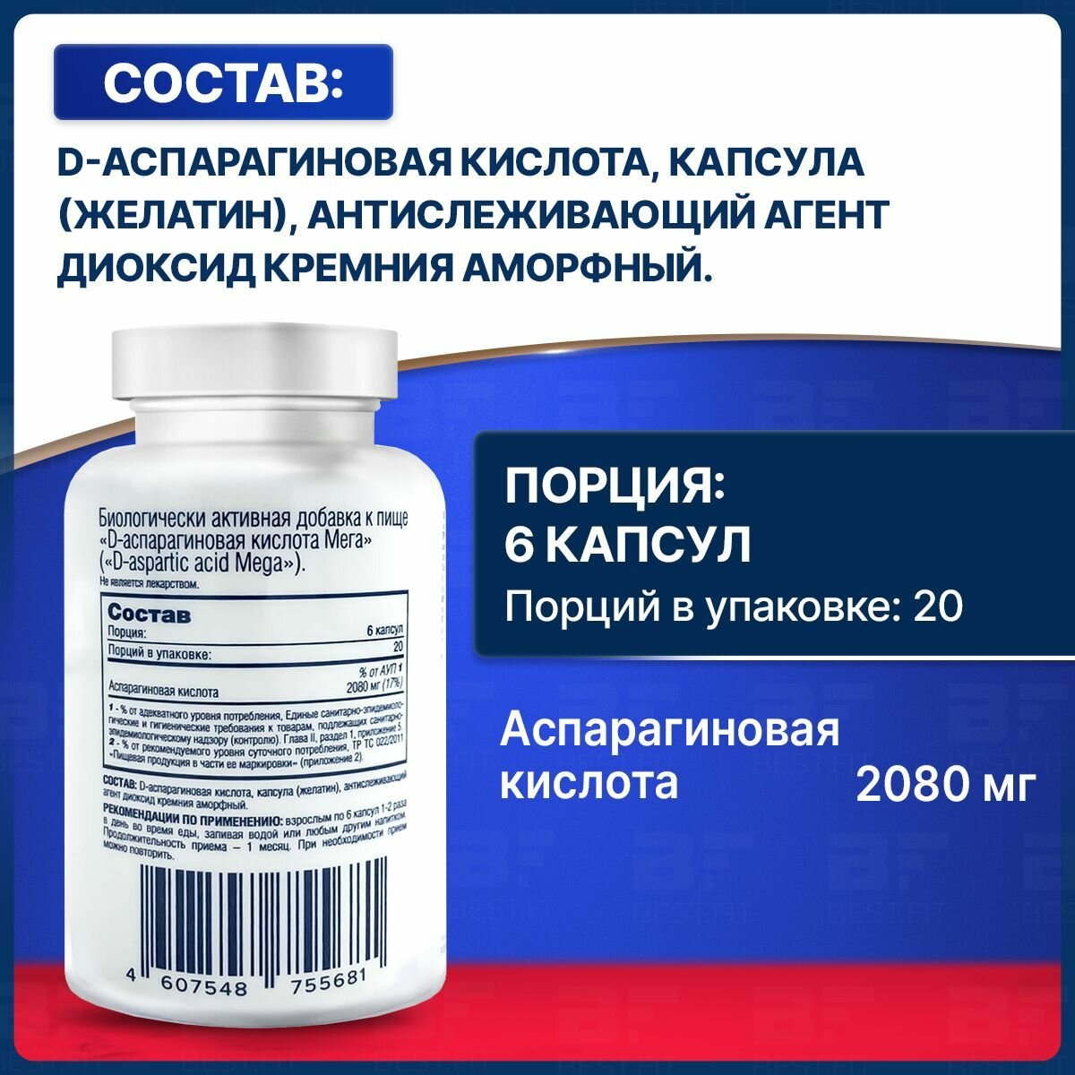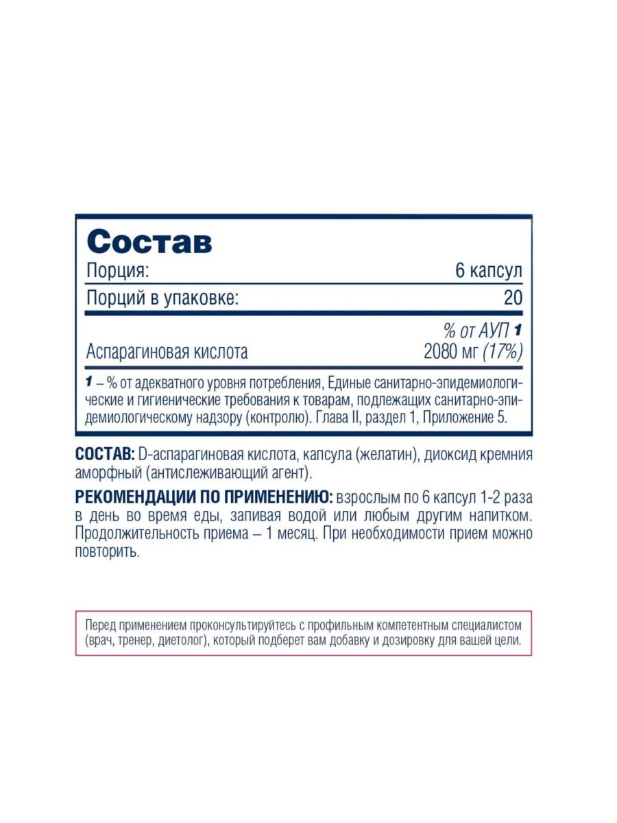 Д-аспарагиновая аминокислота D-aspartic acid 120 капс (Be First)