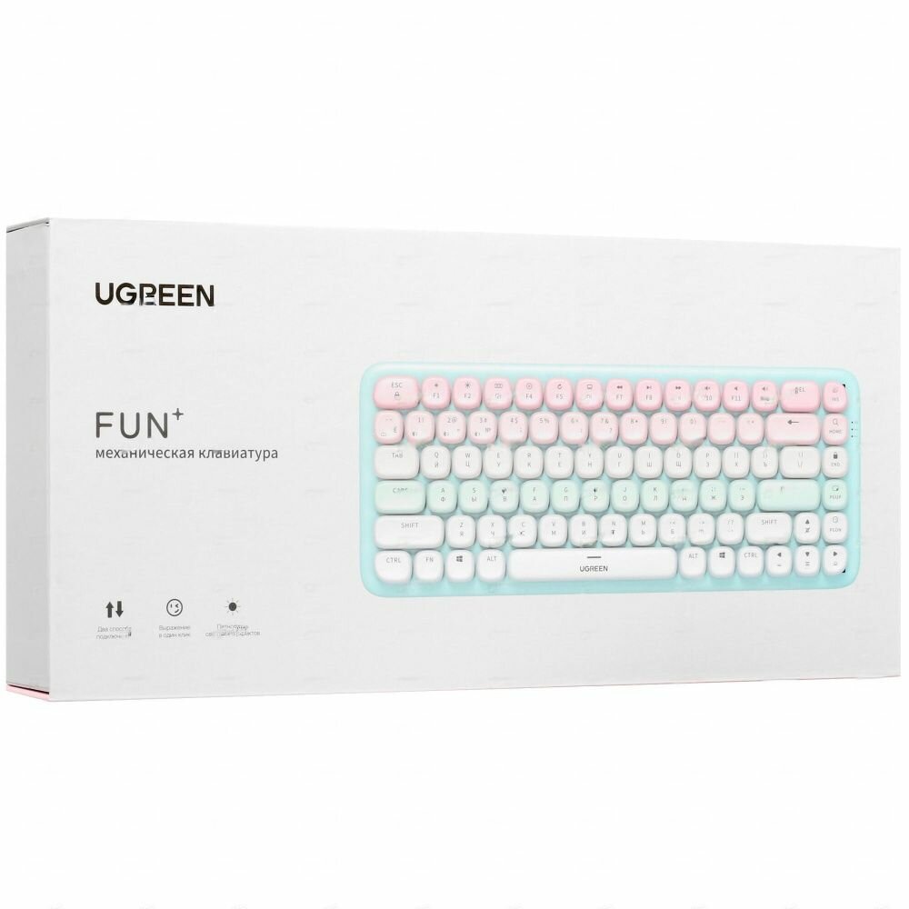 Клавиатура механическая UGREEN KU101 (15227) FUN + Mechanical Keyboard USB-C & Bluetooth мятная/розовая