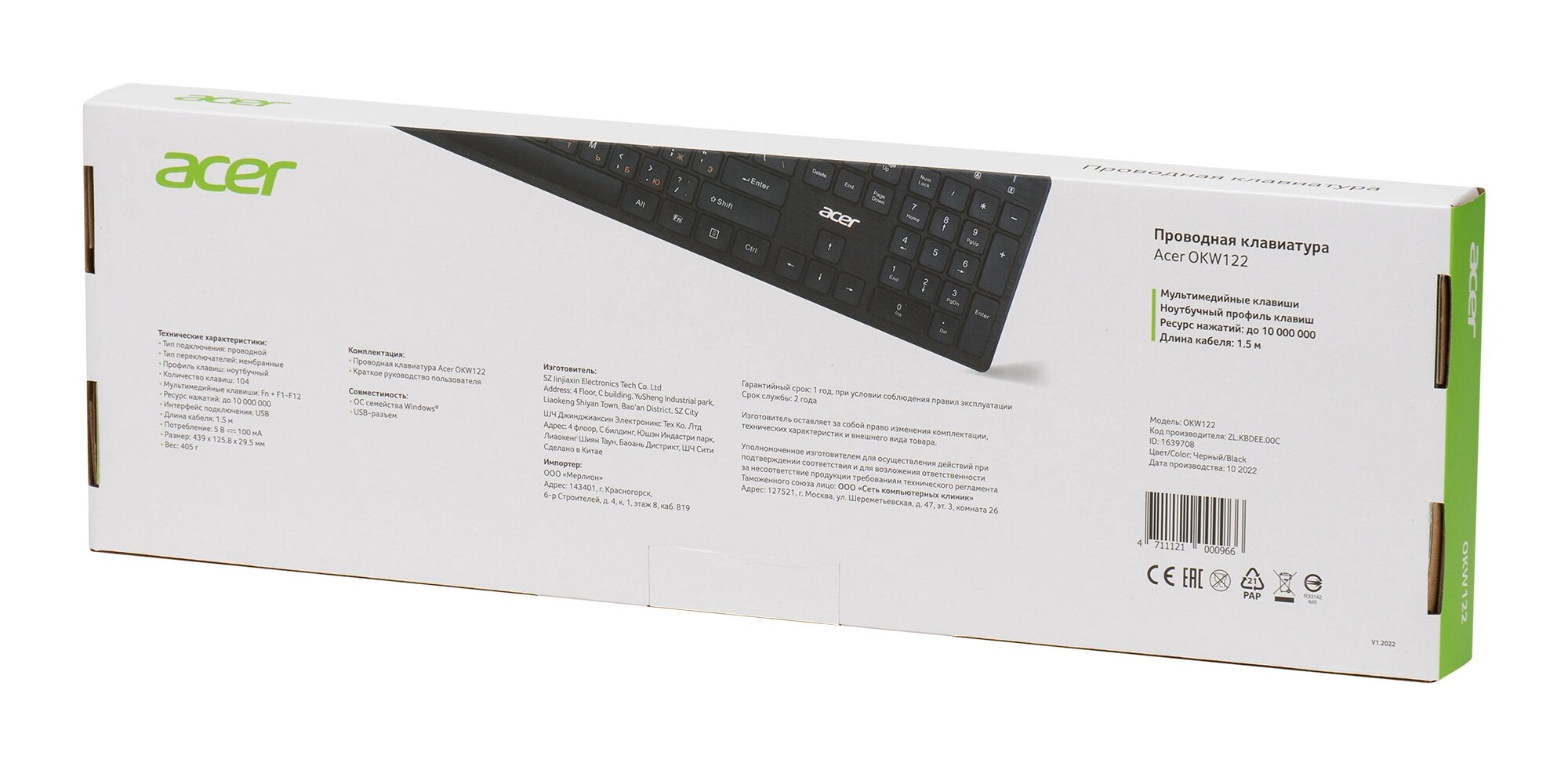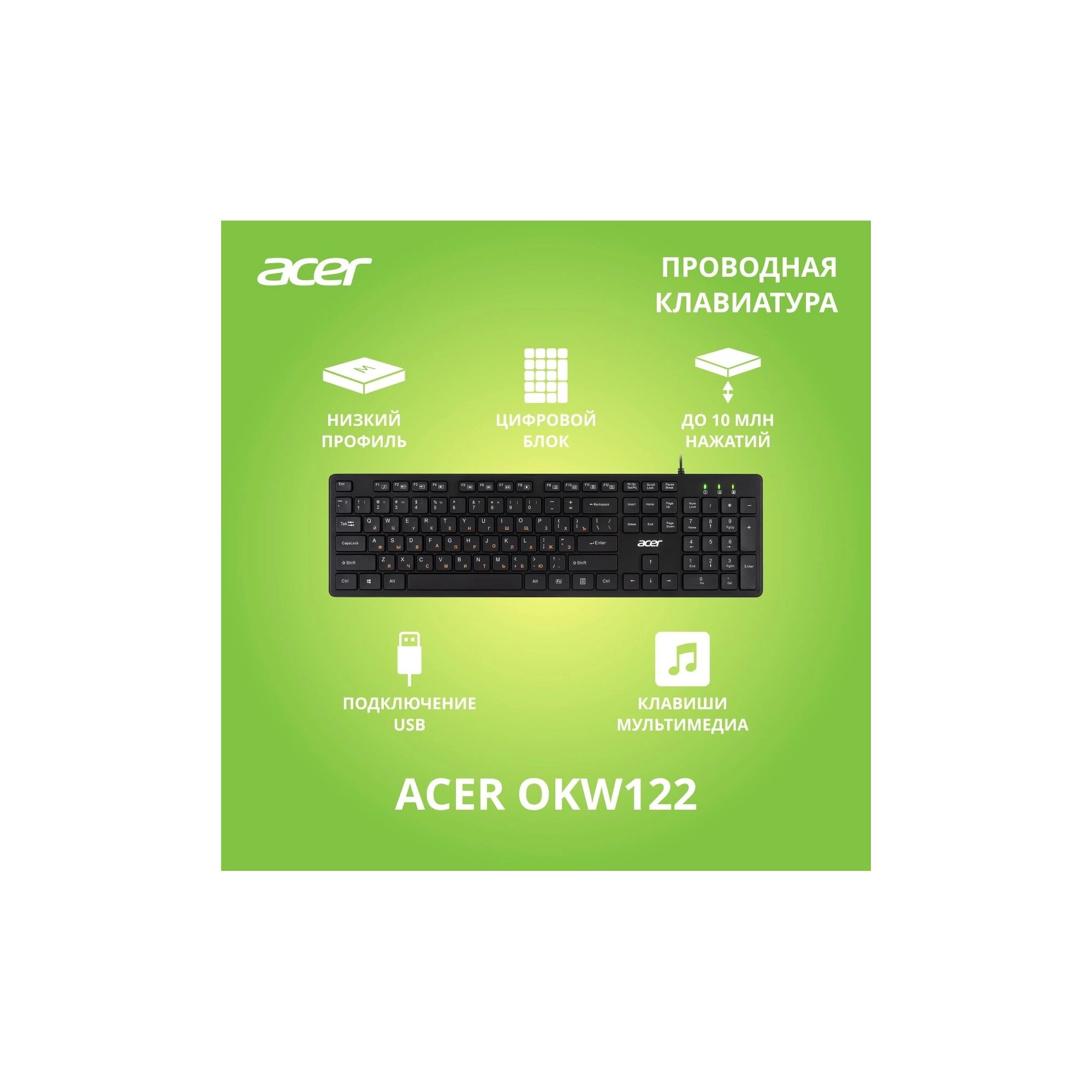 Клавиатура Acer OKW122, мембранная, проводная, USB, черный (ZL. KBDEE.00C)