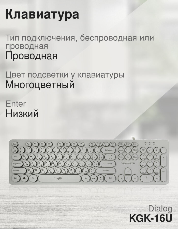 Клавиатура Dialog Gan-Kata Kgk-16u White ,RGB-подсветка, Usb, белая .