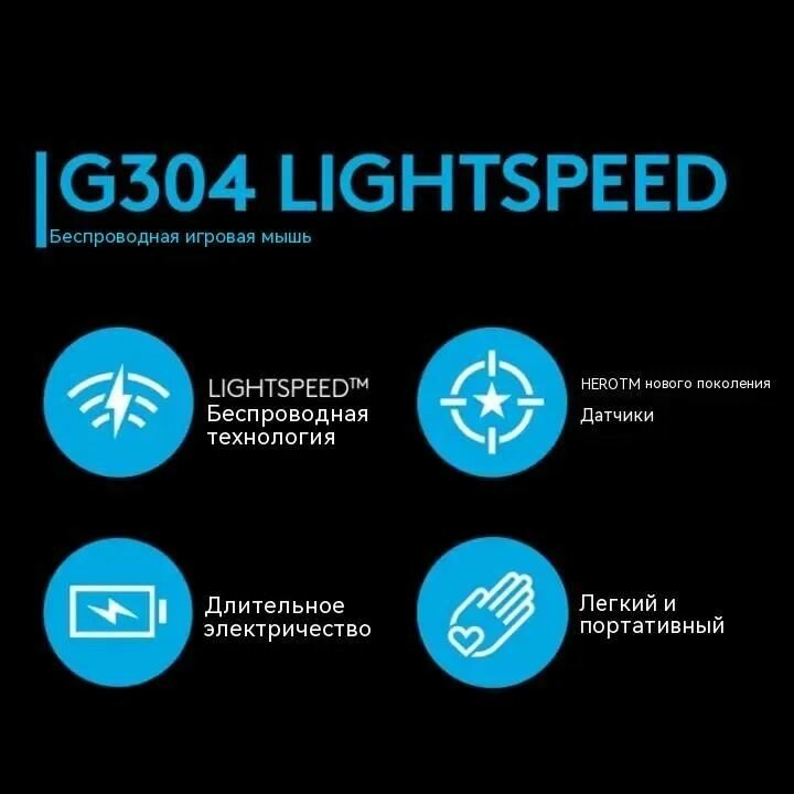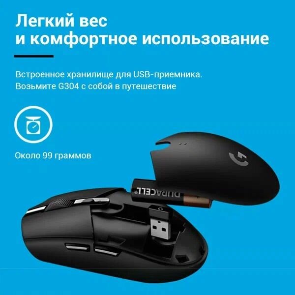 Мышь Logitech G304 Lightspeed синяя Беспроводная игровая (2,4 ГГц,6 кнопок, 12000 dpi, Hero, Usb, .