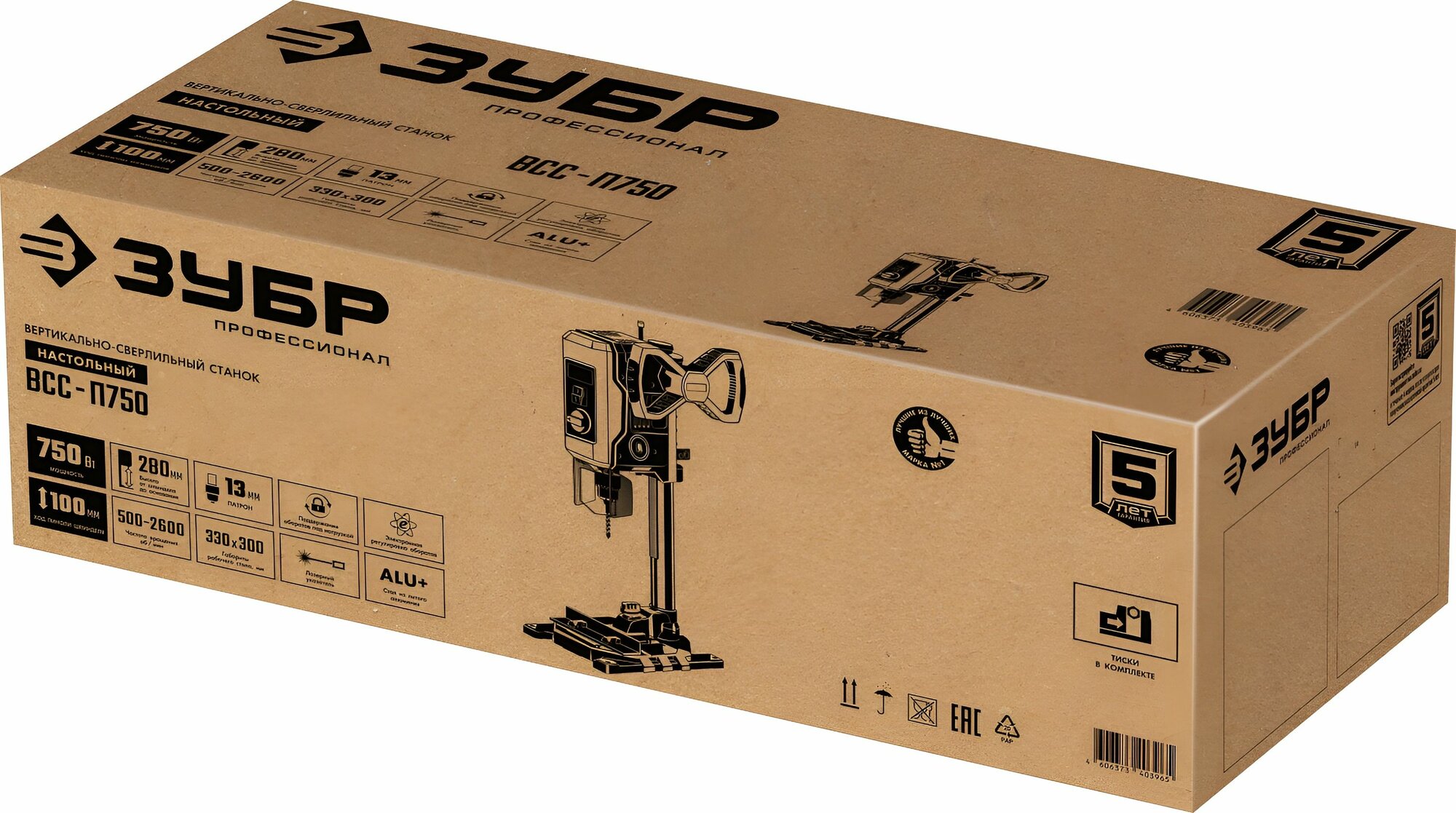 Станок сверлильный 750Вт ЗУБР ВСС-П750 с тисками коробка