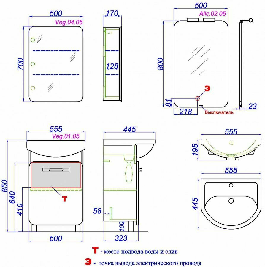 Тумба с раковиной дуб сонома/белый 55,5 см Aqwella Vega Veg.01.05 + 12091