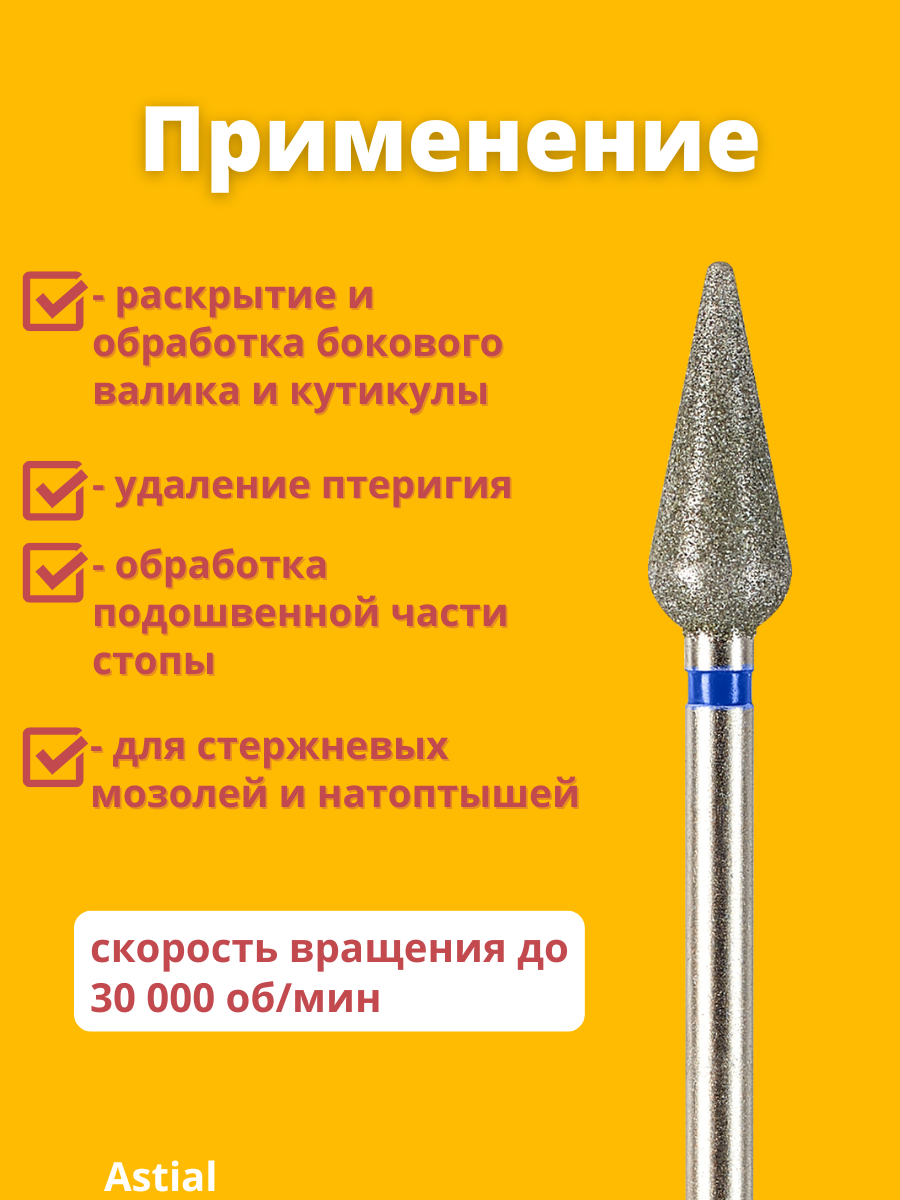 СохранитьФреза Astial "Морковка" (Почка Конус Капля) для маникюра и педикюра алмазная, 5 мм, синяя насечка , 10 штук интересное: