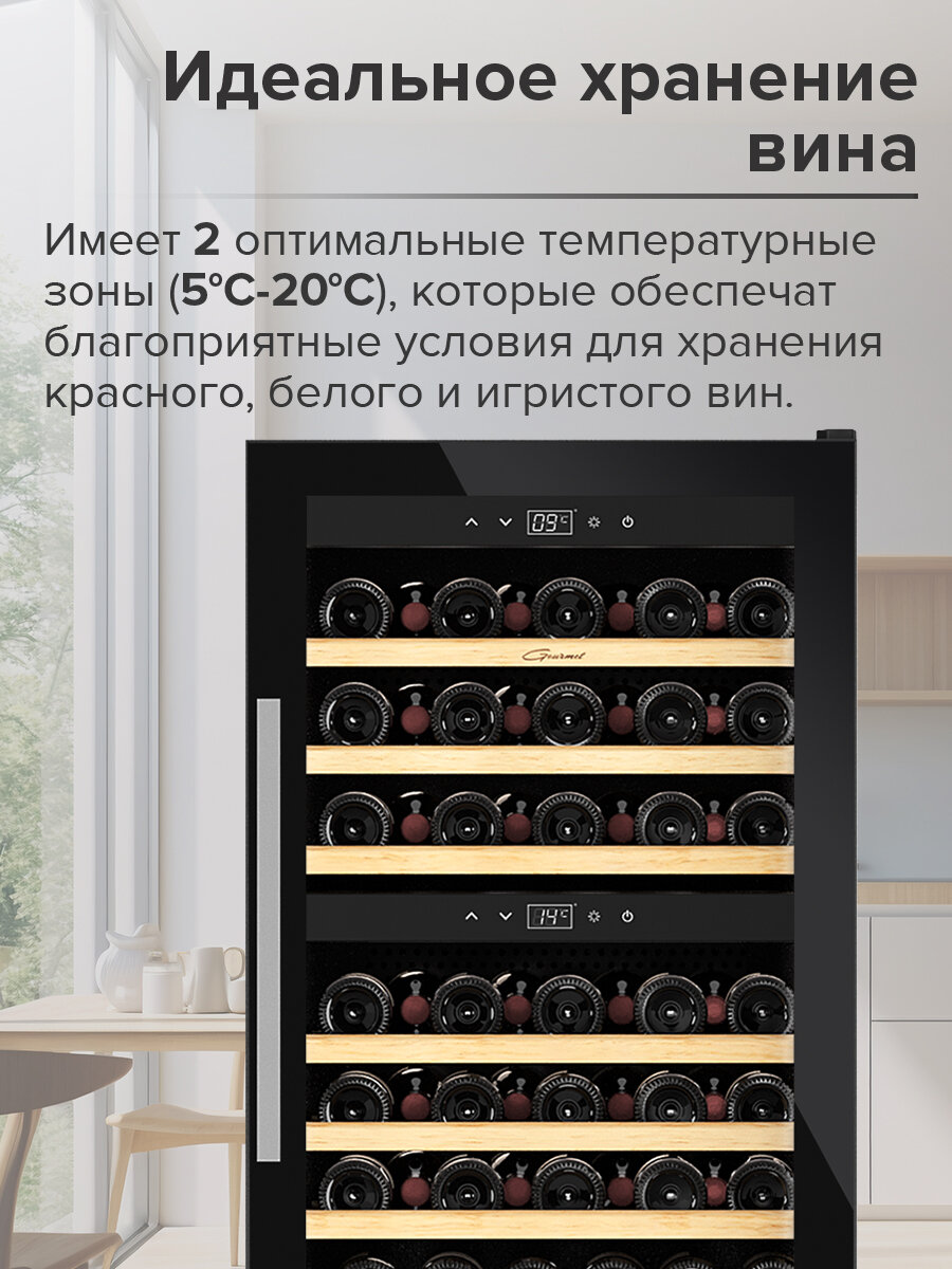 | Тип винного шкафа | двухтемпературный |