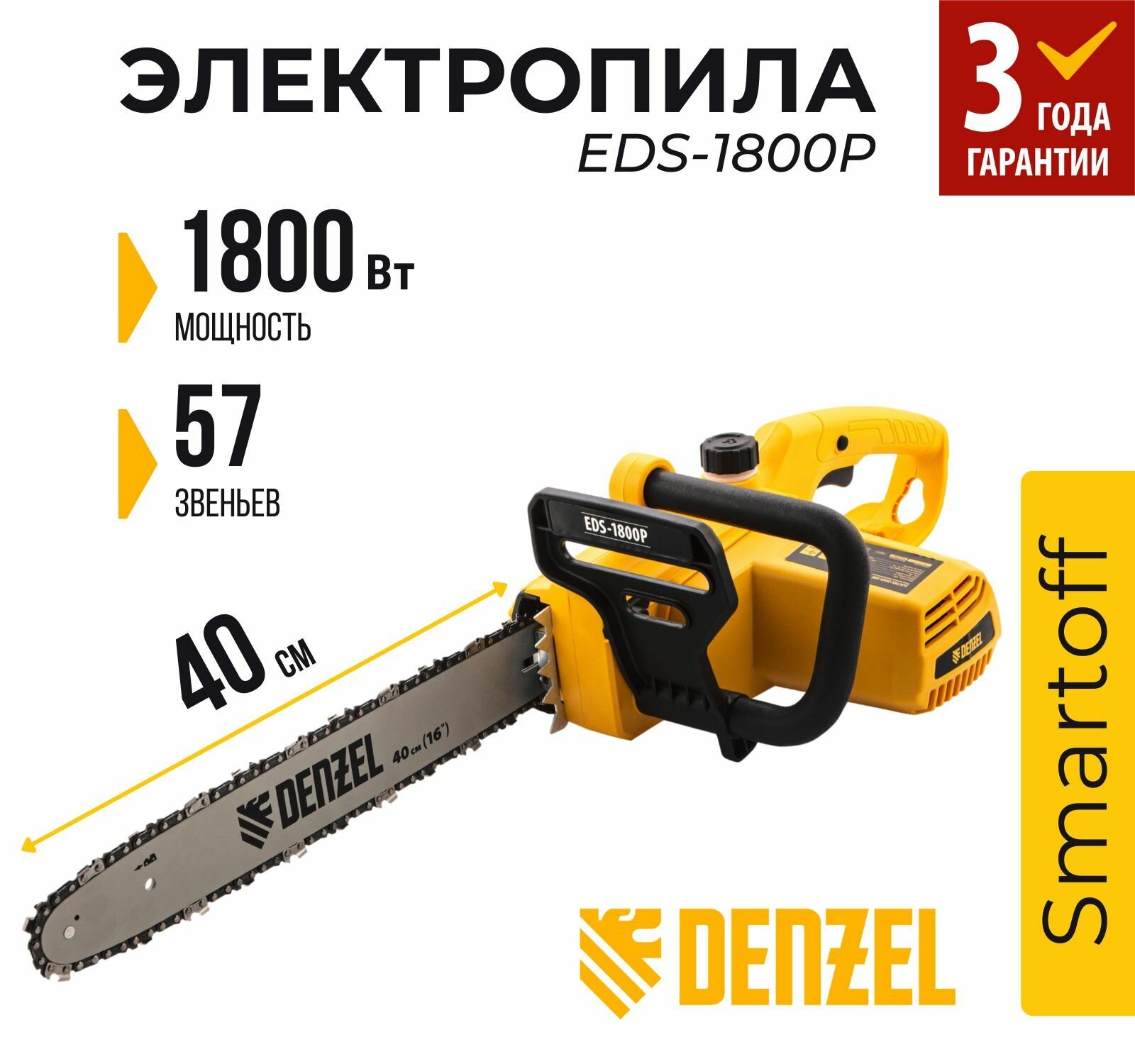 Пила цепная электрическая DENZEL EDS-1800P 95615, 1800 Вт