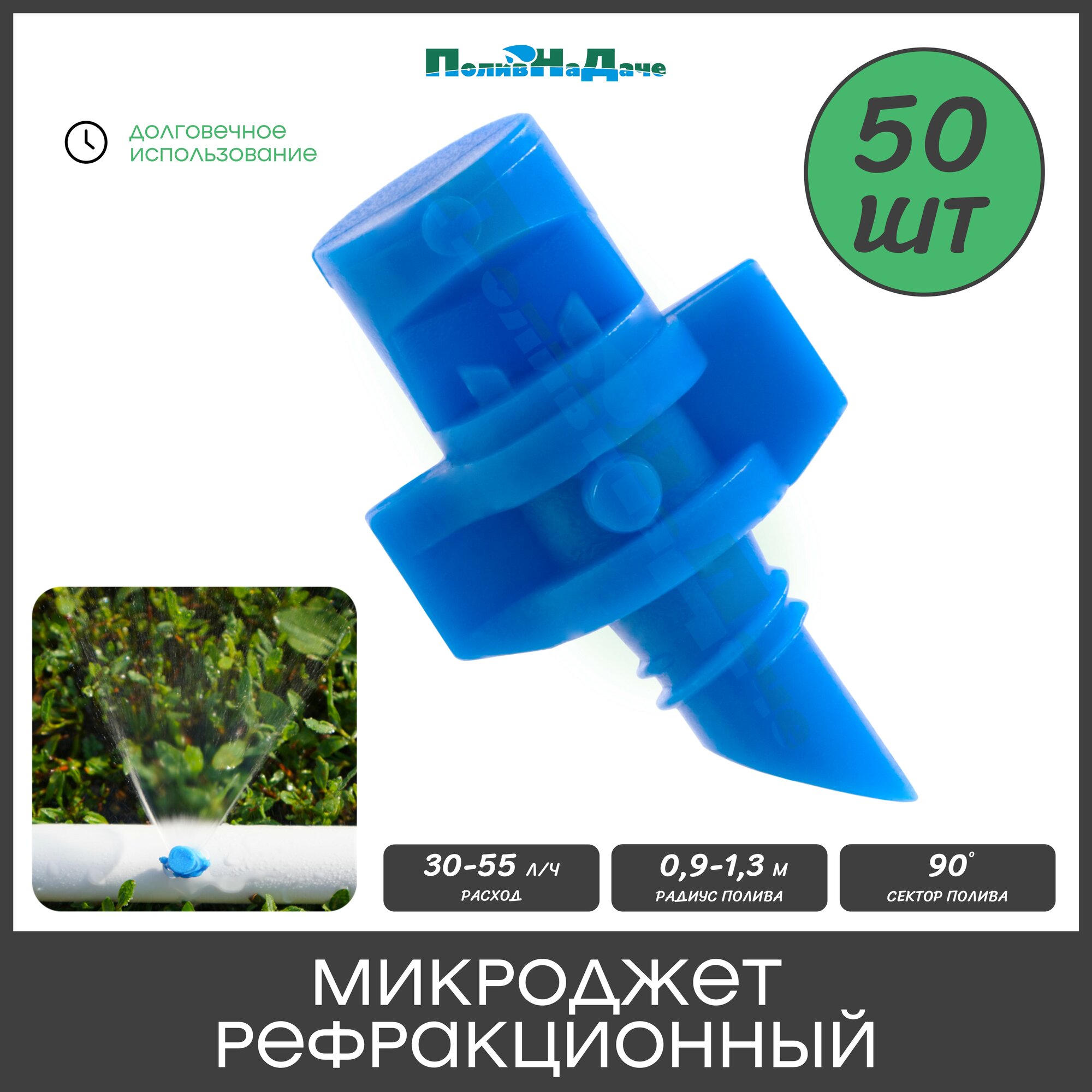 Микроджет рефракционный, сектор полива 90 градусов, синий, радиус 0,9-1,3м, расход 30-55л/ч при давлении 1,5-3 bar (50 шт)