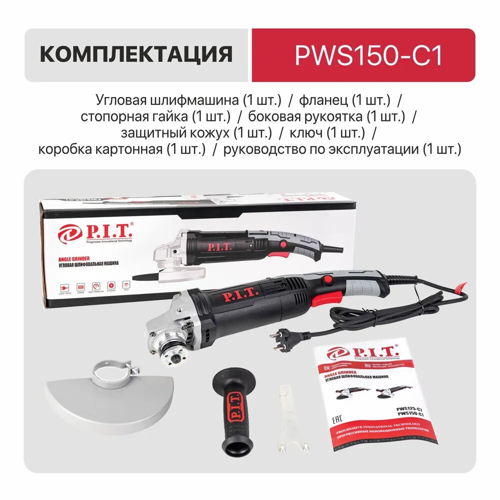 Шлифмашина угловая (УШМ, болгарка) P. I. T. PWS150-C1, 150мм, 1260Вт, регулировка оборотов