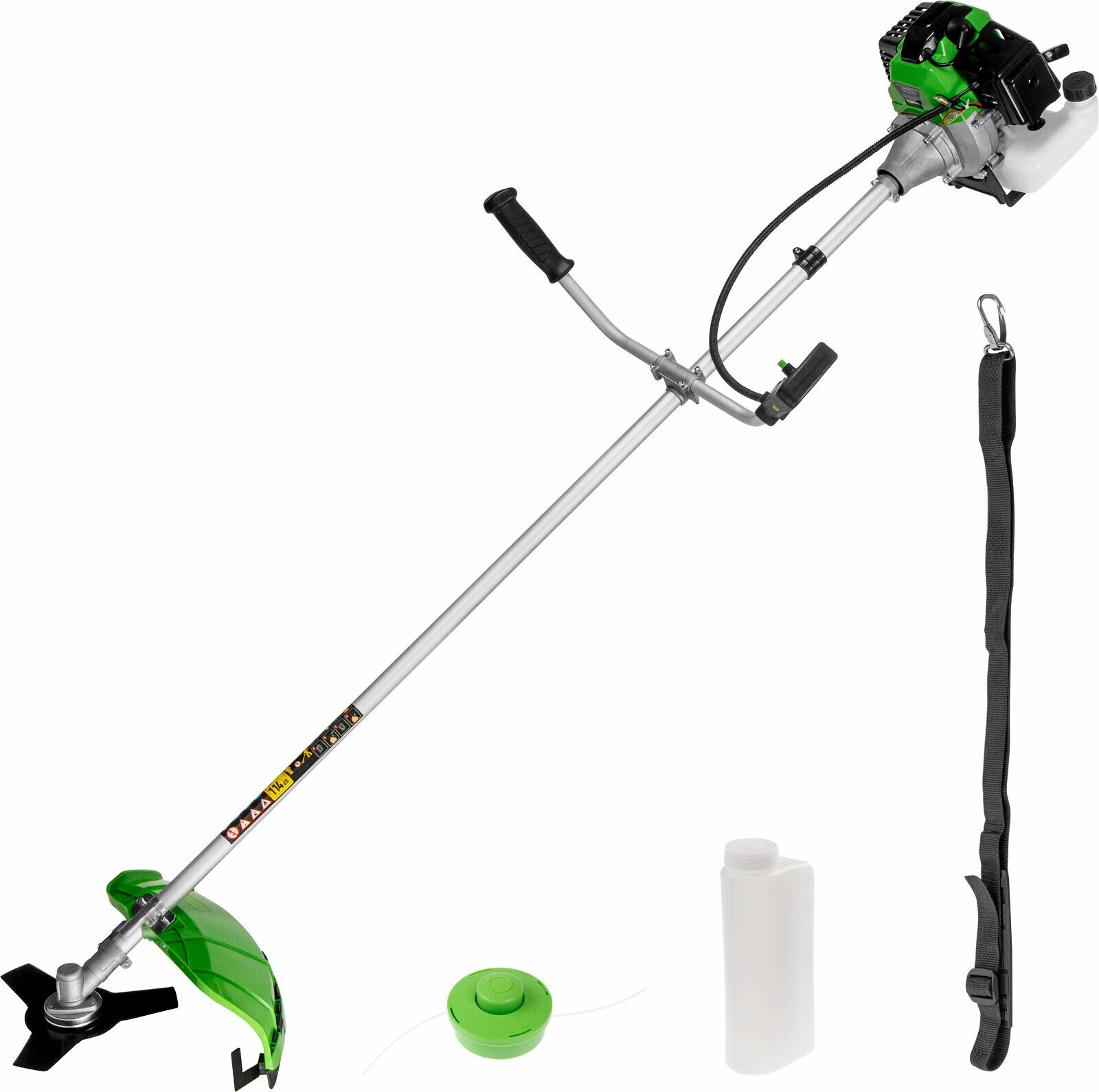 | Подробная комплектация | мотокоса в разборе, инструкция по эксплуатации, одночленный ремень, косильная головка, трехлопастной нож, набор инструментов, емкость для приготовления топливной смеси |