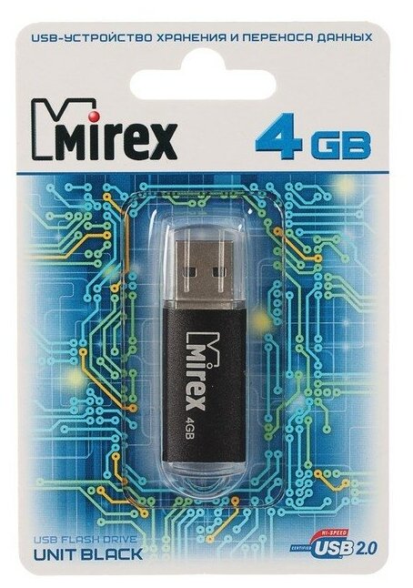 Купить Флешка 4GB Mirex Unit, USB 2.0, Черный 13600-FMUUND04