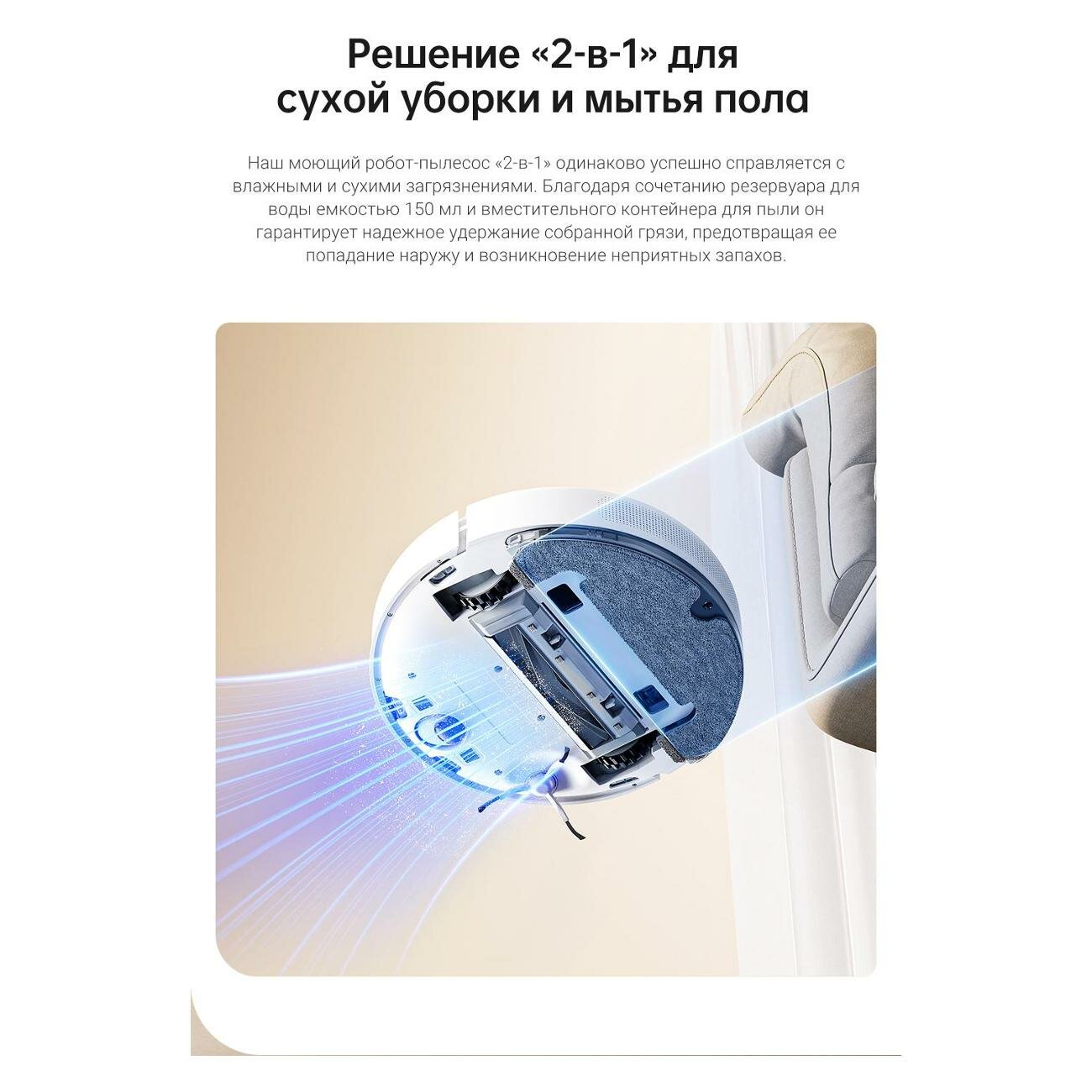 | Плюсы: | Отлично убирает и моет, хорошая ориентация по помещению. Очень тихий в процессе уборки |
