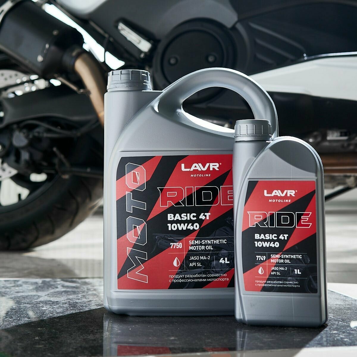 Моторное масло для мотоциклов LAVR MOTO RIDE BASIC 4T 10W40 SL, 4 л / Ln7750