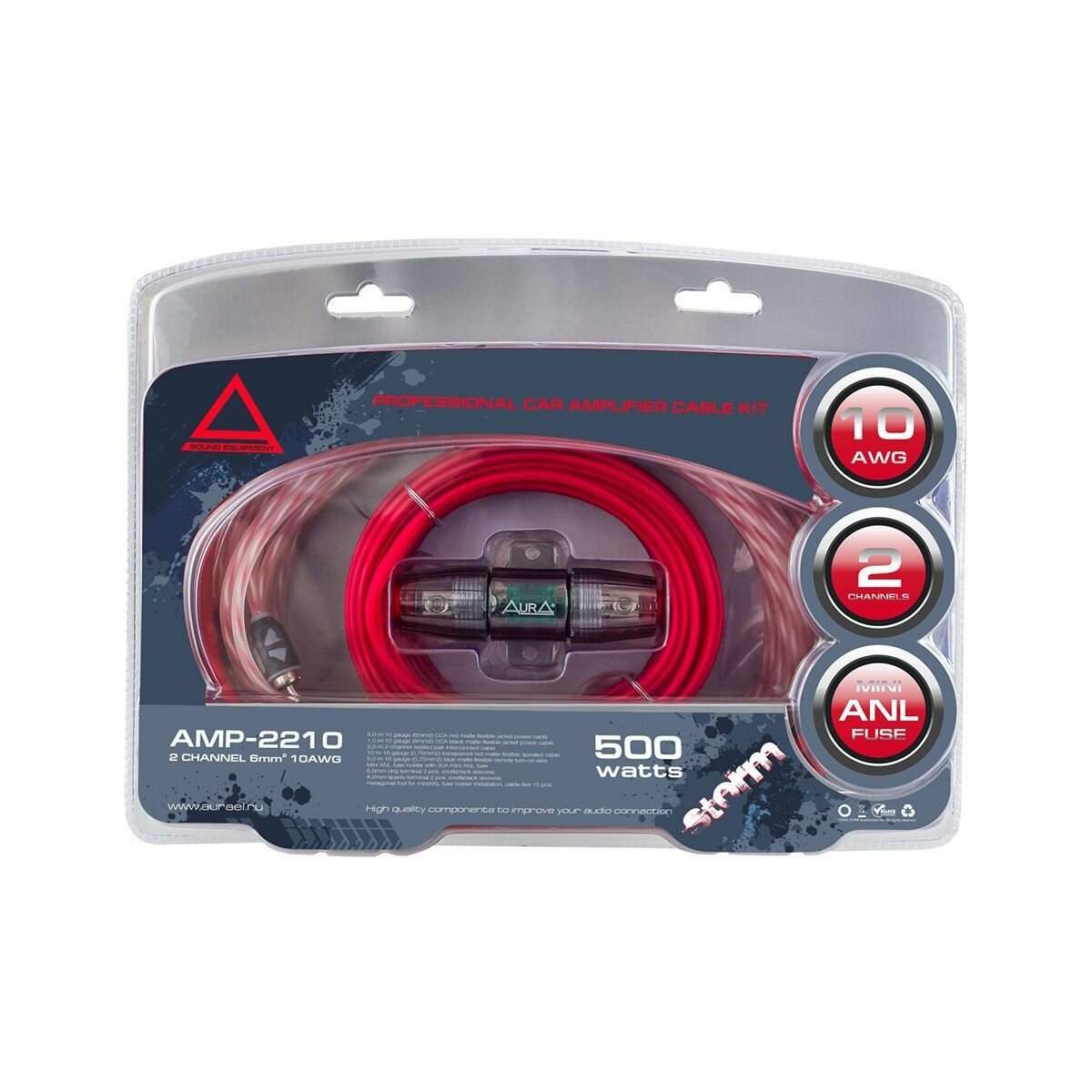 Комплект кабелей для усилителя 2х10мм2, AurA AMP-2208