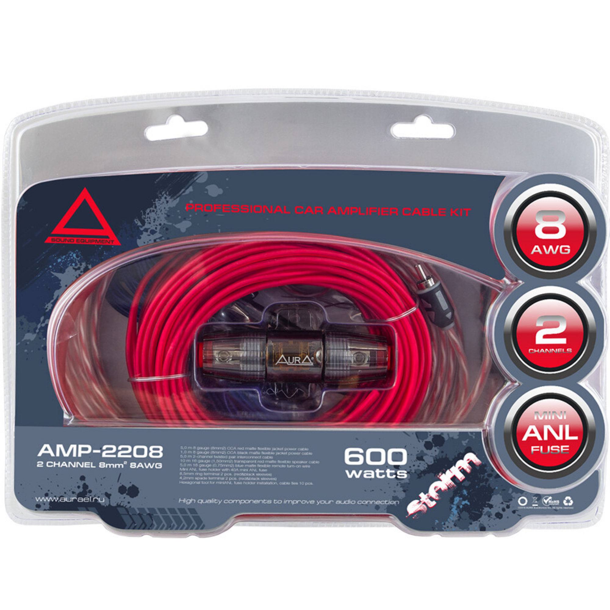 Комплект кабелей для усилителя 2х10мм2, AurA AMP-2208