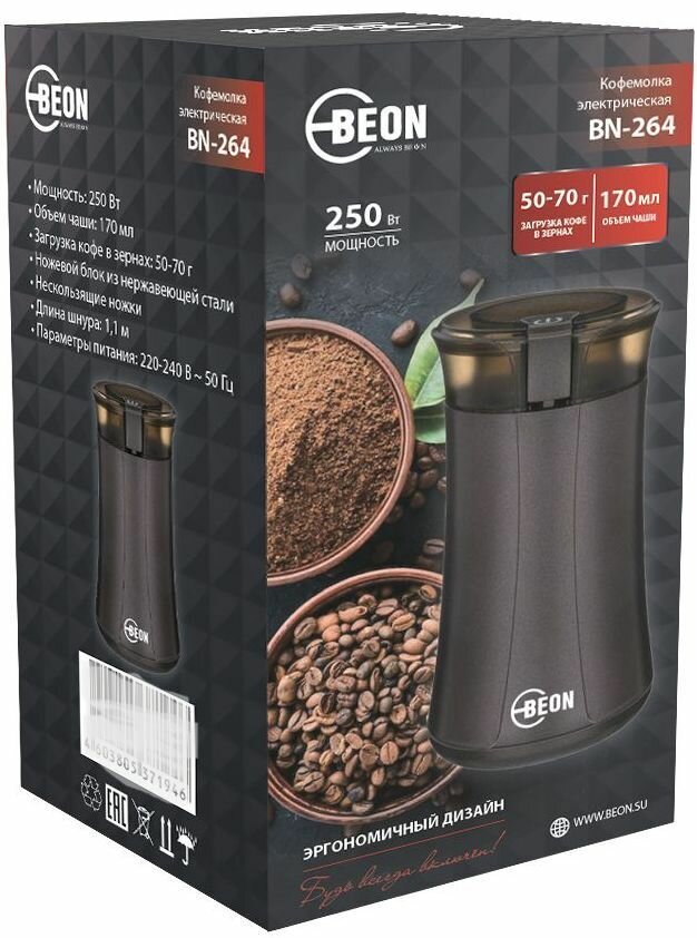 Кофемолка электрическая Beon BN-264 250Вт 170 мл, коричневый интересное: