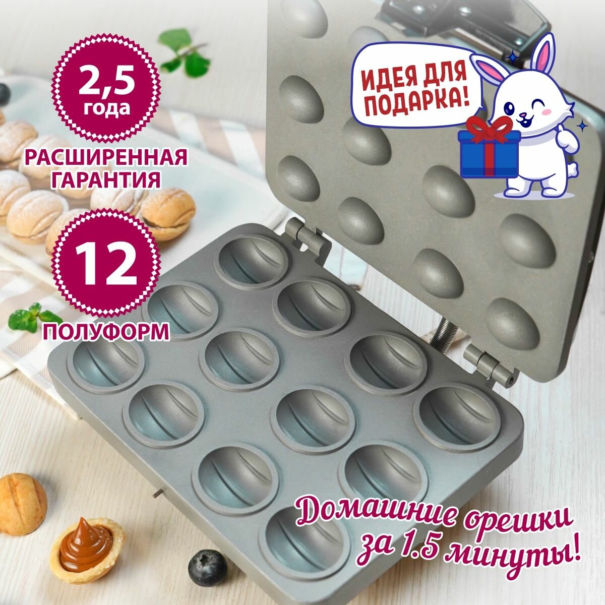 | Плюсы: | Отлично запекает, за минуту-две, орешки суперские выходят, хрустящие ( ну тут от теста зависит). Прибор качественный. |