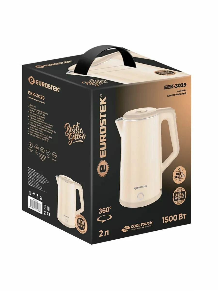 Чайник электрический Eurostek Eek-3029, пластик, колба металл, 2 л, 1500 Вт, бежевый EuroStek 977110 .