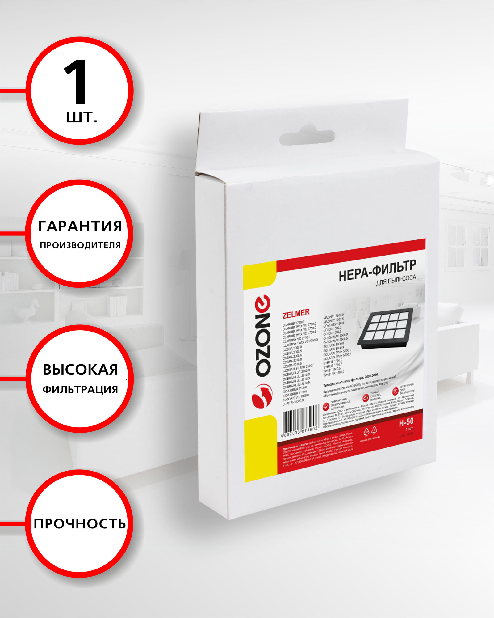 HEPA фильтр для пылесоса ZELMER тип оригинального фильтра: A 2000.0050 бренд OZONE интересное: