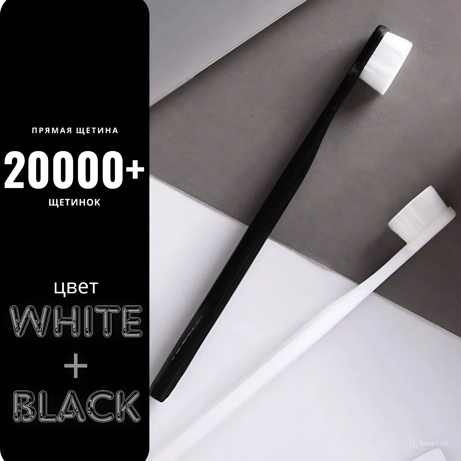 Зубная щетка 20000+ щетинок, ультрамягкая, с прямой щетиной, с футляром, белая и черная, 2шт