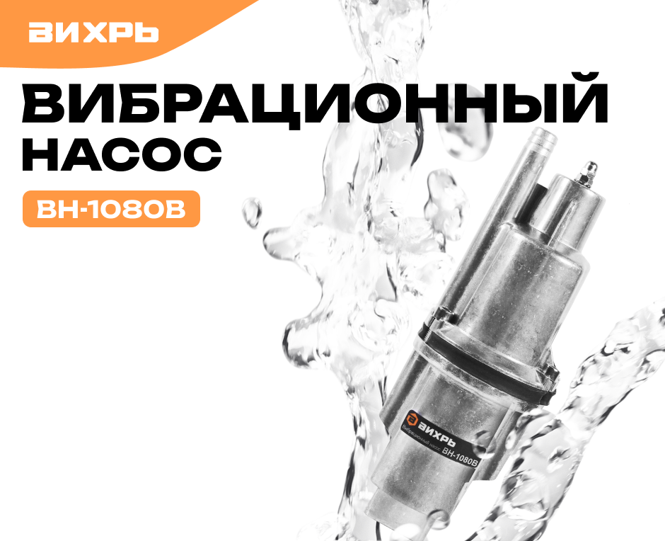 Вибрационный насос ВН-1080В Вихрь, высота подъема 72м, верхний забор воды, кабель 10м интересное: