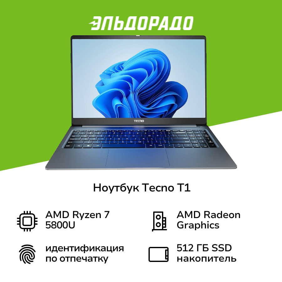Ноутбук Tecno T1/15.6"/AMD Ryzen 7 5800U/16/512/Win/Grey