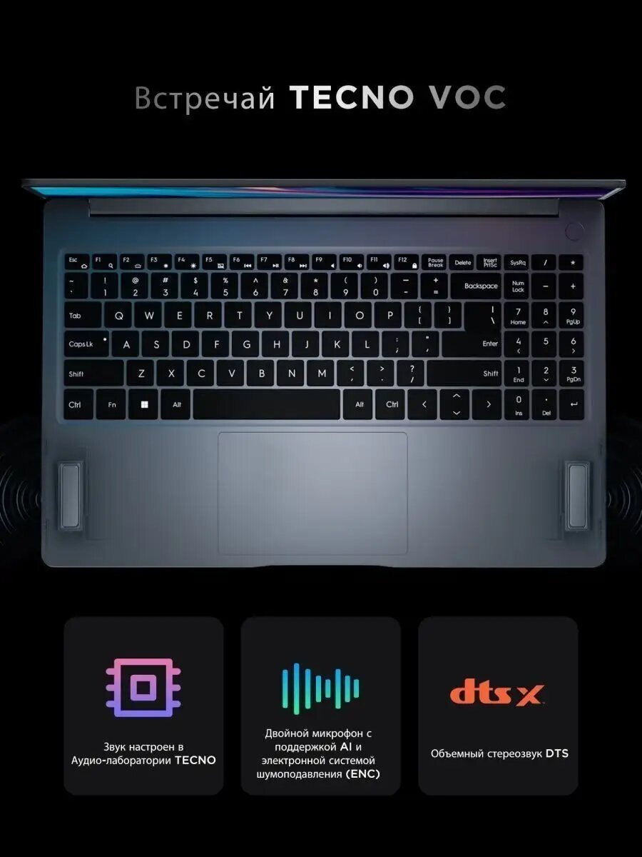 Ноутбук Tecno MEGABOOK-T1 2023 i5 16+512G Grey DOS T15AA 15.6" FHD (1920x1080) /Intel Core i5-12450H/4х4,5Гц/10 нм/16Gb + 512Gb/Wifi 6/1,56 kg/Fingerprint Power button/Bluetooth