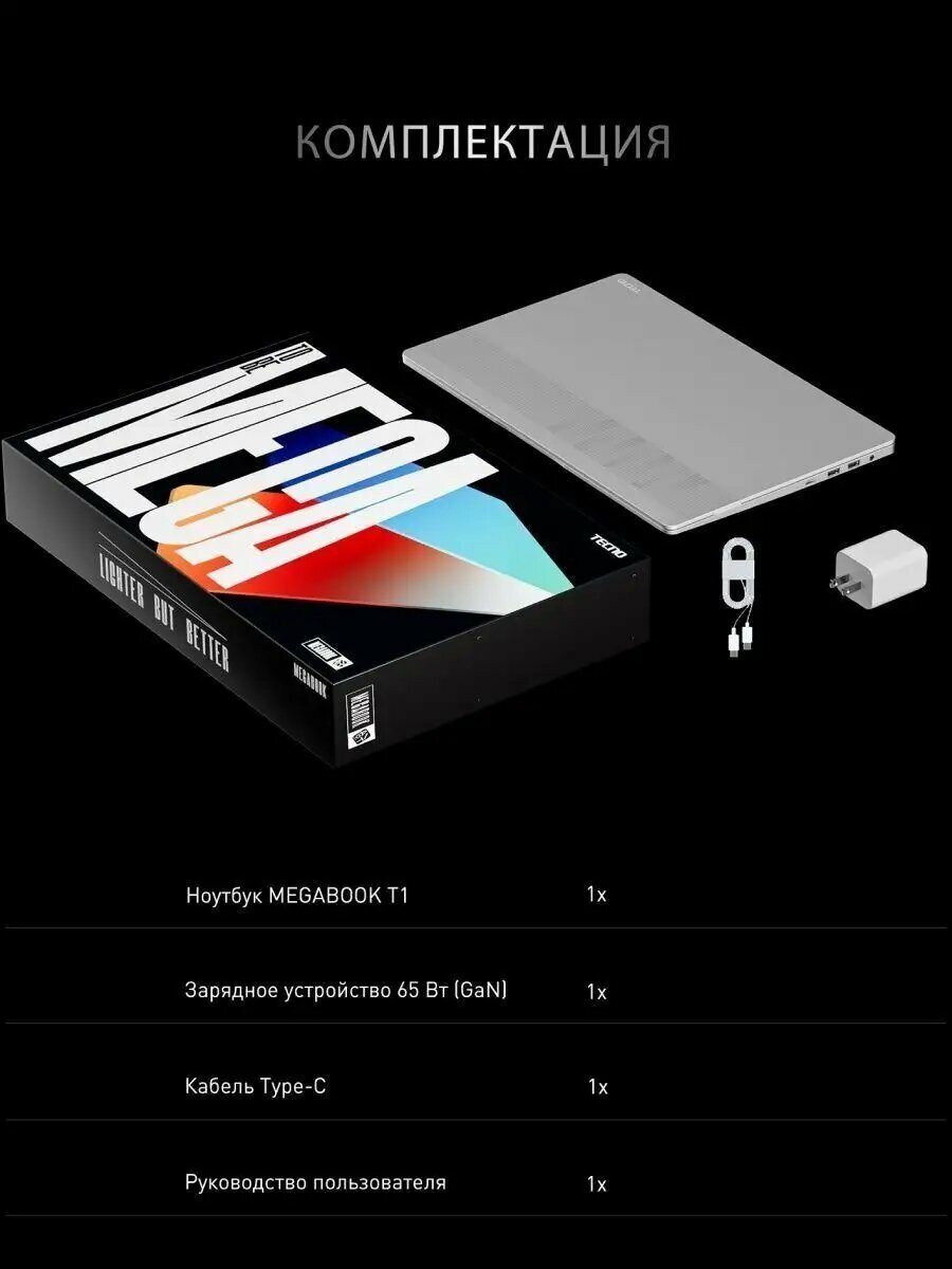 Ноутбук Tecno Megabook S1 15.6″/Core i7/16/SSD 1024/Iris Xe Graphics/Windows 11 Home 64-bit/серый космос+серый