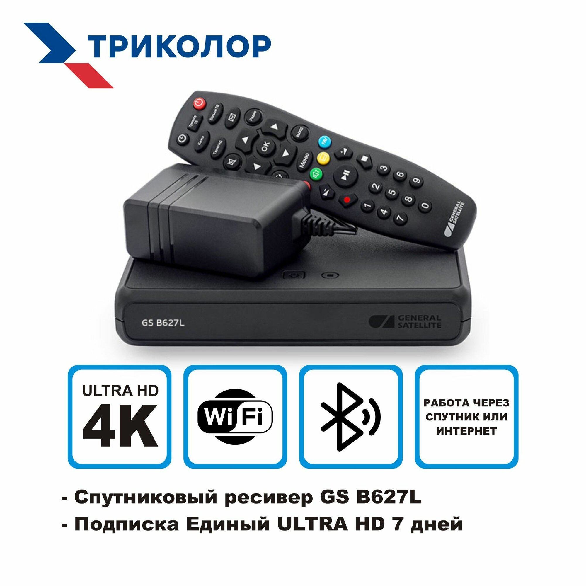 Комплект спутникового телевидения Триколор ТВ Ultra HD GS B529L (Тариф "Единый ULTRA HD" 2500 руб./год) - центр