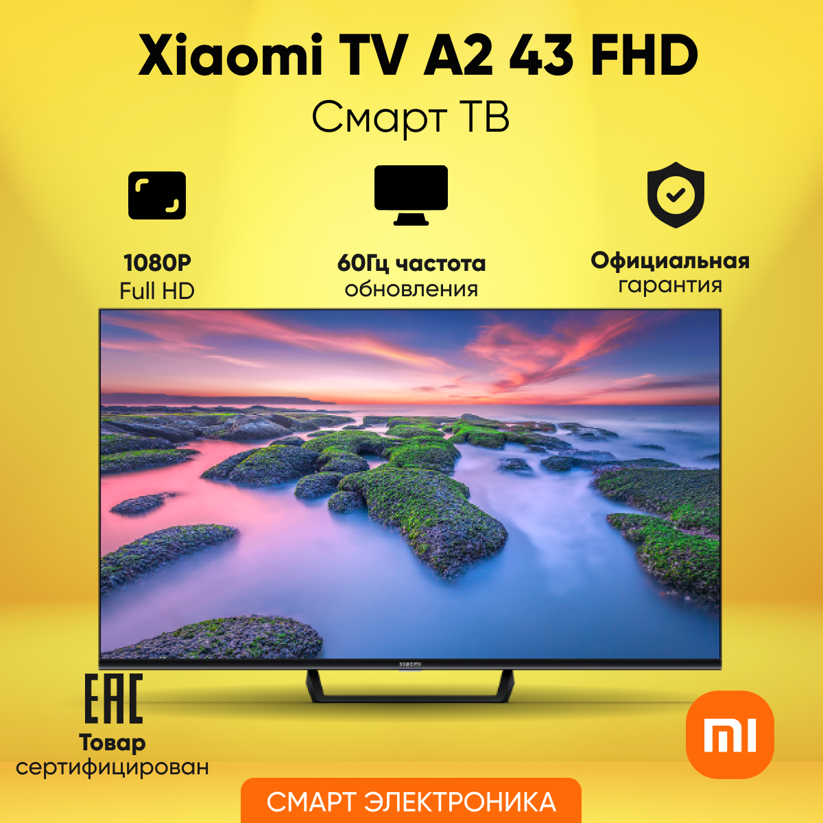 Телевизор 43" Xiaomi Mi TV A2 43 FHD RU (Full HD 1920x1080, Smart TV) черный