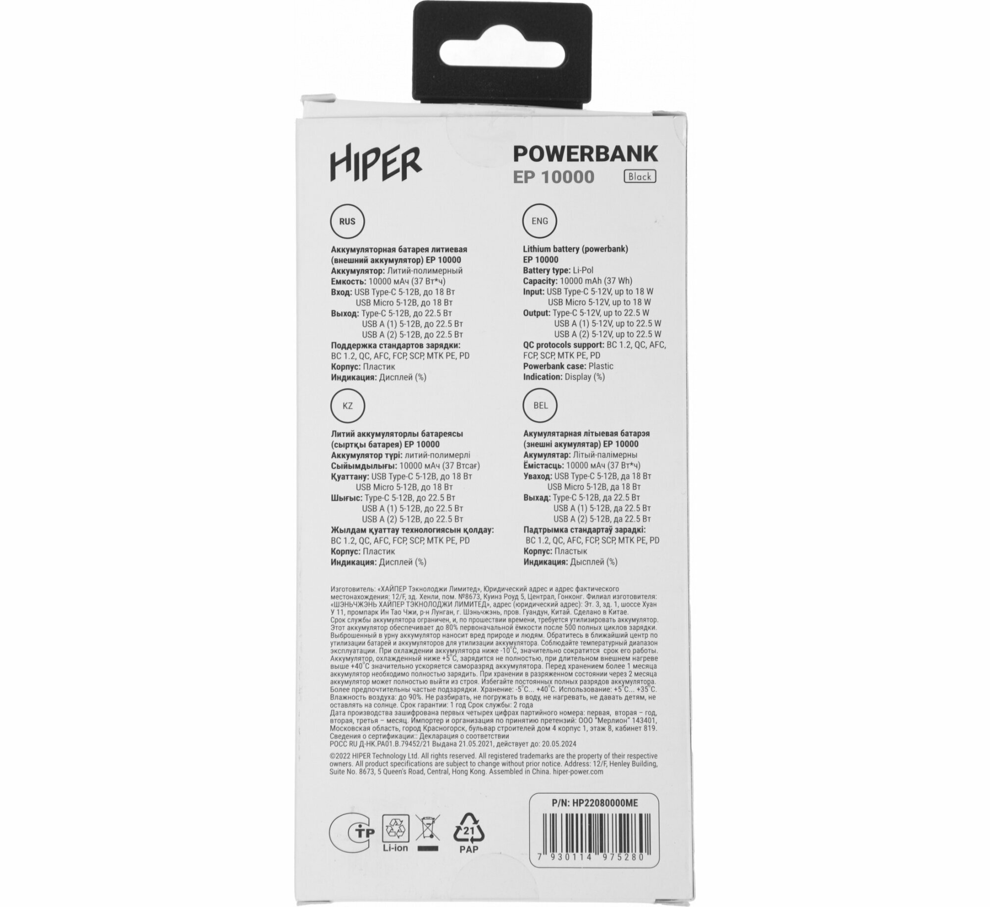 Внешний аккумулятор Hiper Power Bank EP10000 Black