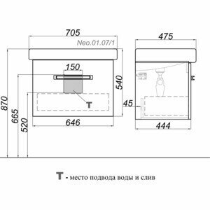 Тумба под раковину Aqwella Neo 70 подвесная Neo.01.07/1