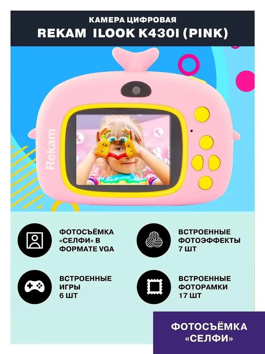 Детская цифровая фотокамера Rekam iLook K430i розовая, 6 встроенных игр