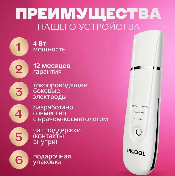 Аппарат для ультразвуковой чистки лица и глубокого очищения кожи INCOOL 9в1 интересное: