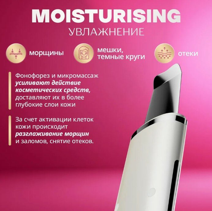 | Принцип работы | RF-лифтинг / ионизация / пилинг / ультразвук / фонофорез |