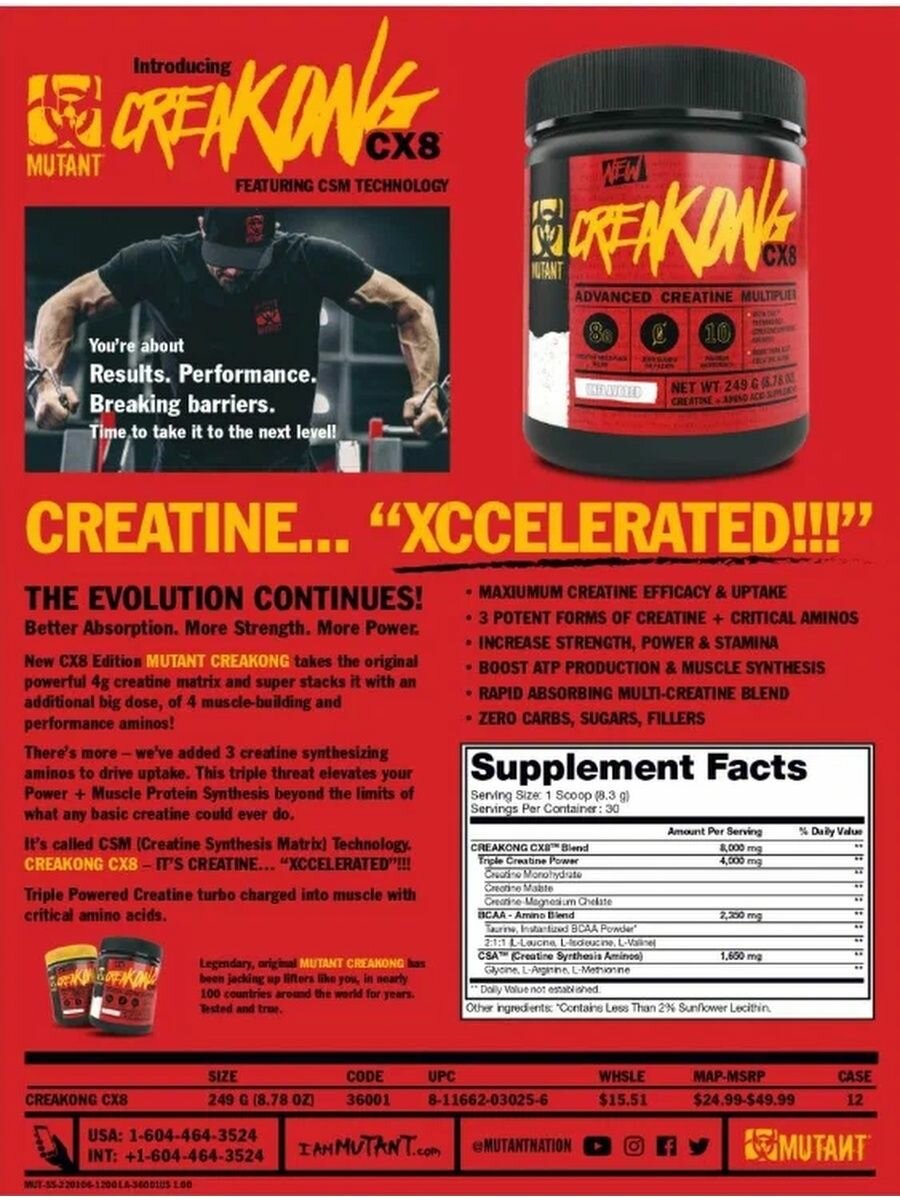 Креатиновый комплекс (Креатин) MUTANT Creakong CX8, Без вкуса, 249 г интересное: