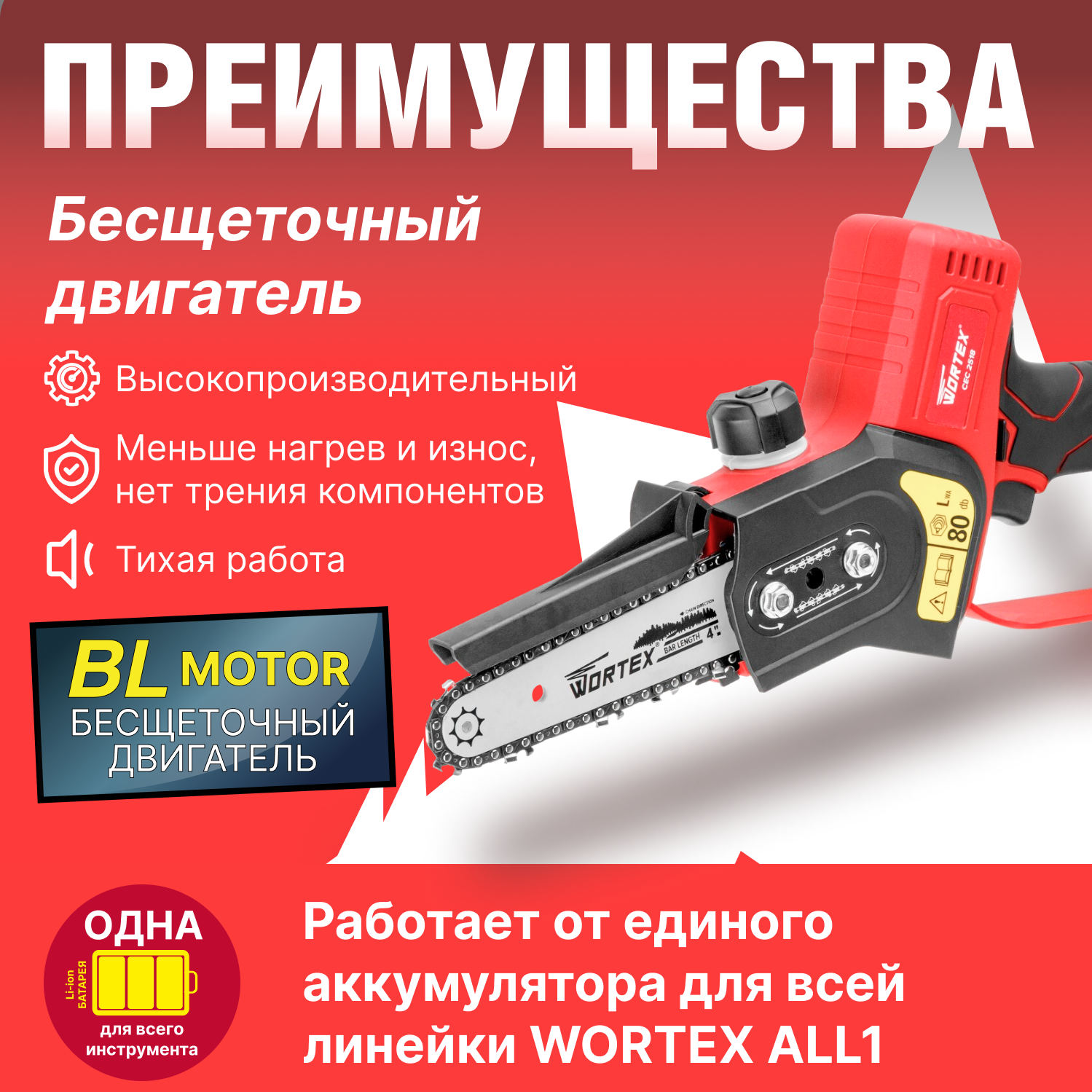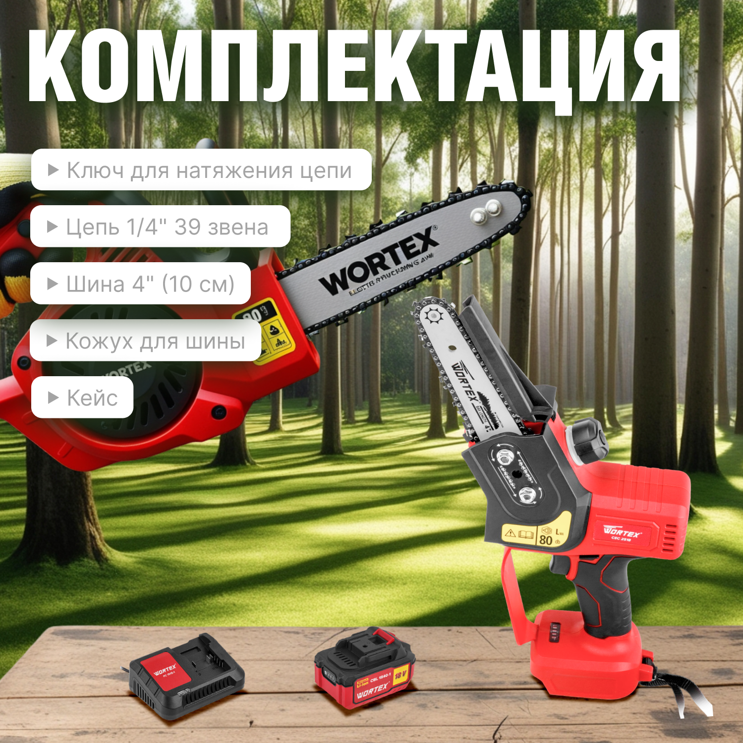 Пила цепная аккумуляторная WORTEX CEC 2518 ALL1 с АКБ и З/У (0323167)