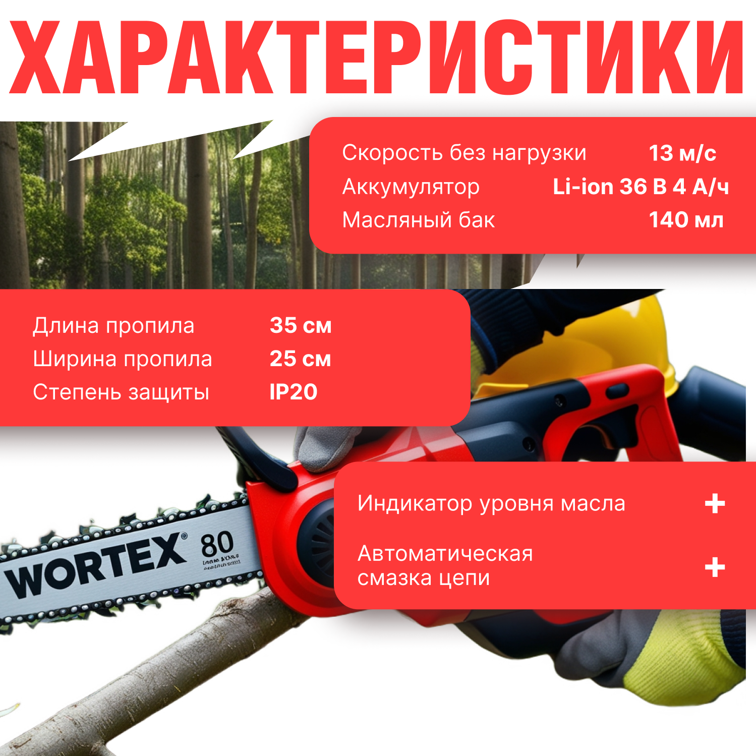 Wortex Пила цепная аккумуляторная CEC 2518 ALL1 0323166 .