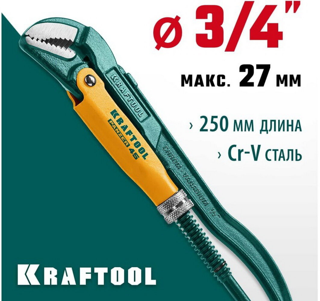 KRAFTOOL Panzer-45 Ключ трубный, №0, изогнутые губки 2735-05_z02