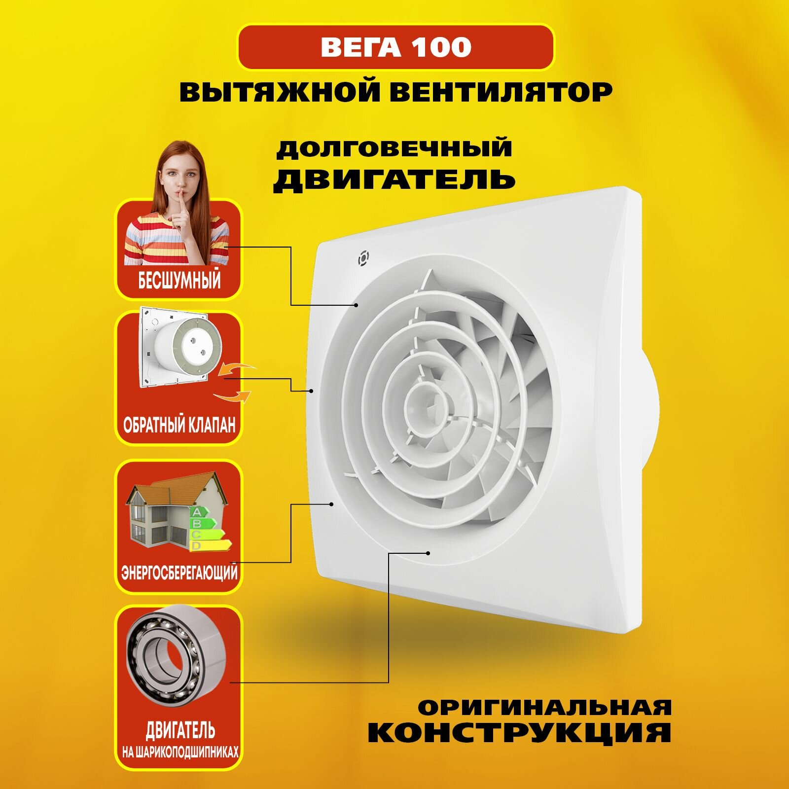 Вентилятор 100 Вега энергосберегающий, 8 Вт, 24 дБ, 95 м3/ч