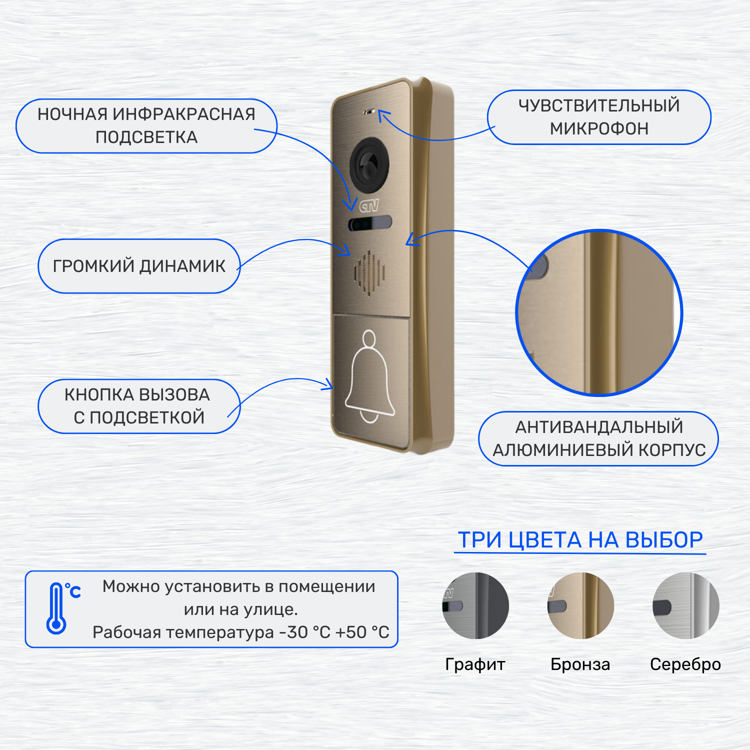 | Материал кнопок звонков | алюминий |