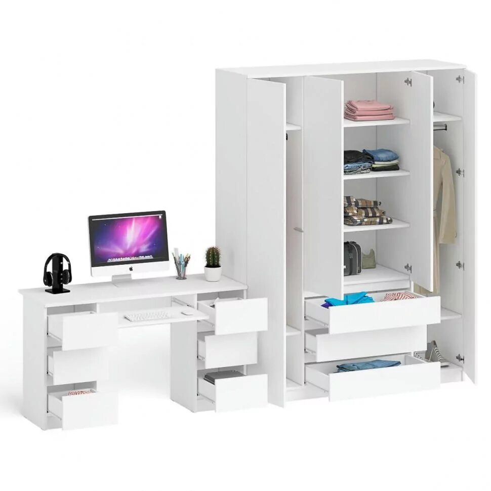 Шкаф распашной 4 створки МШ 1600.1 модульная система Мори Белый 210х160,4х50,4 см
