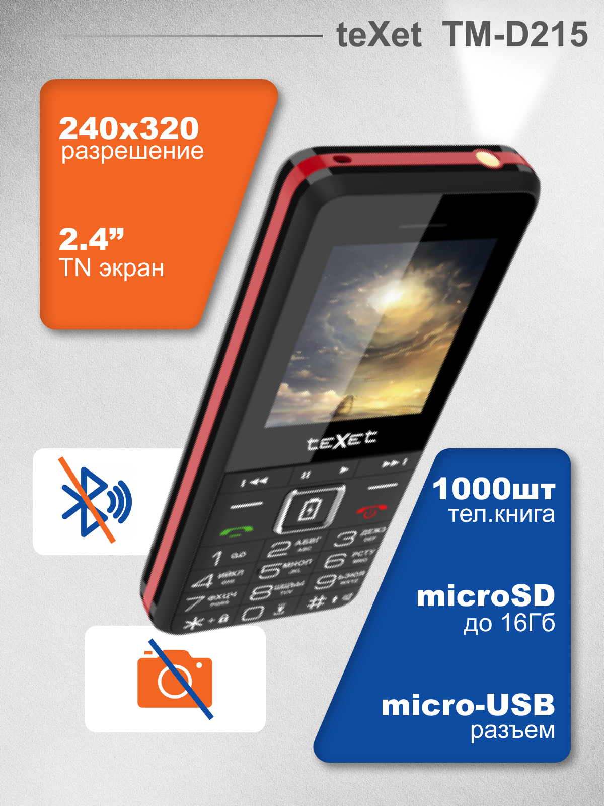 Телефон мобильный TEXET TM-D215 черный-красный (127207)