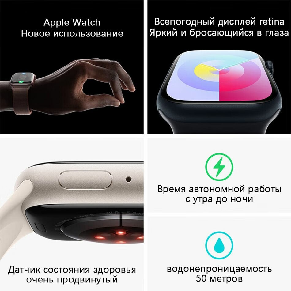 Смарт-часы Apple Watch Series 9 A2978, 41мм, темная ночь/темная ночь [mr9l3ll/a/muun3am/a]