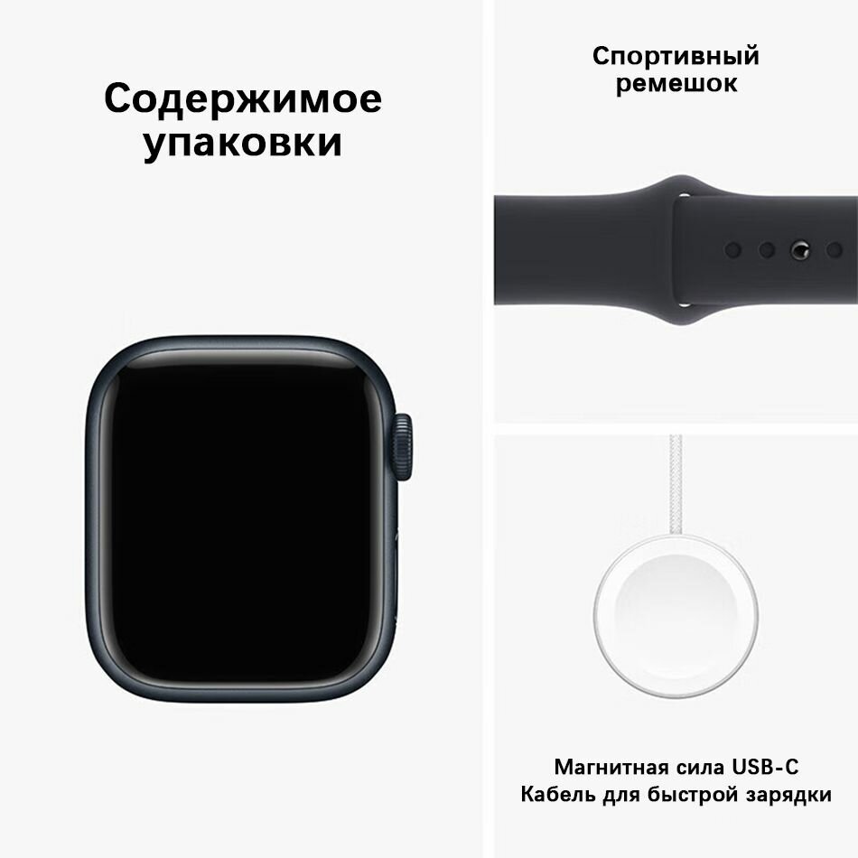 Часы Apple Watch Series 9 GPS 41mm Midnight Aluminium Case with Midnight Sport Band S/M, Корпус из алюминия цвета «полночно-черный», спортивный ремешок черного цвета 41мм S/M