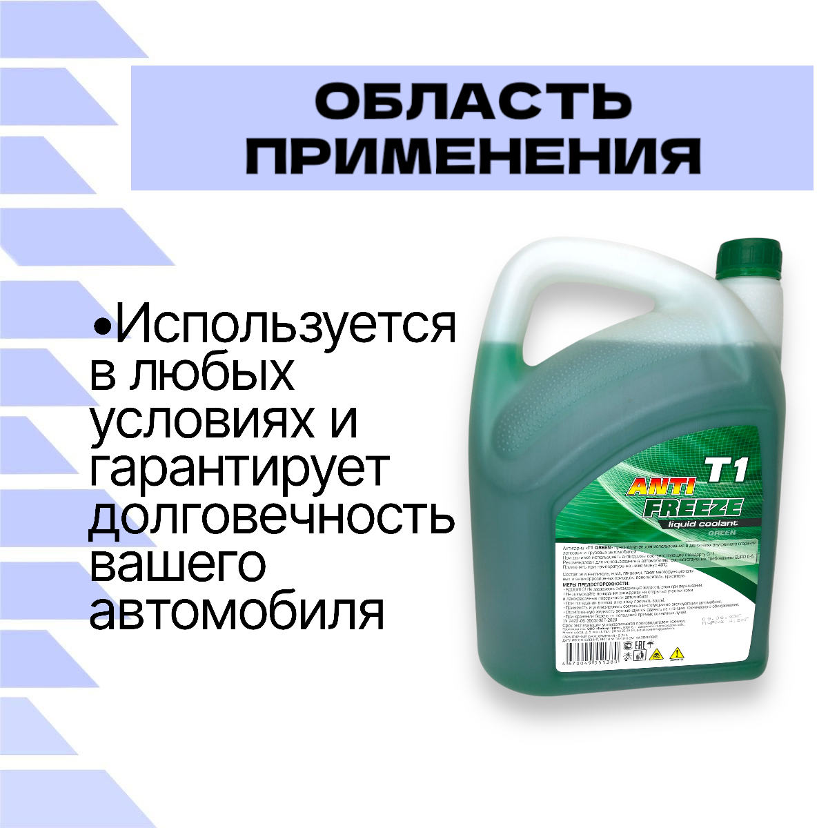 Антифриз T1 зеленый, канистра 10 л, готовая жидкость для системы охлаждения двигателя