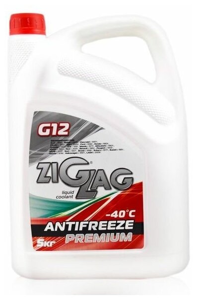 Купить Антифриз ZIGZAG "PREMIUM G12", для грузовой и спецтехники, 5кг, -40°С, красный, готовый