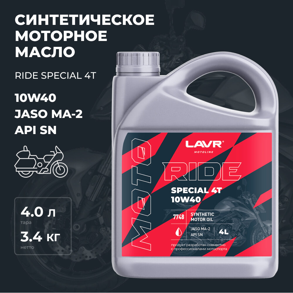 Масло Моторное Lavr Moto Ride Special 4Т Sn 10W-40 4 Л Ln7748 LAVR арт. Ln7748